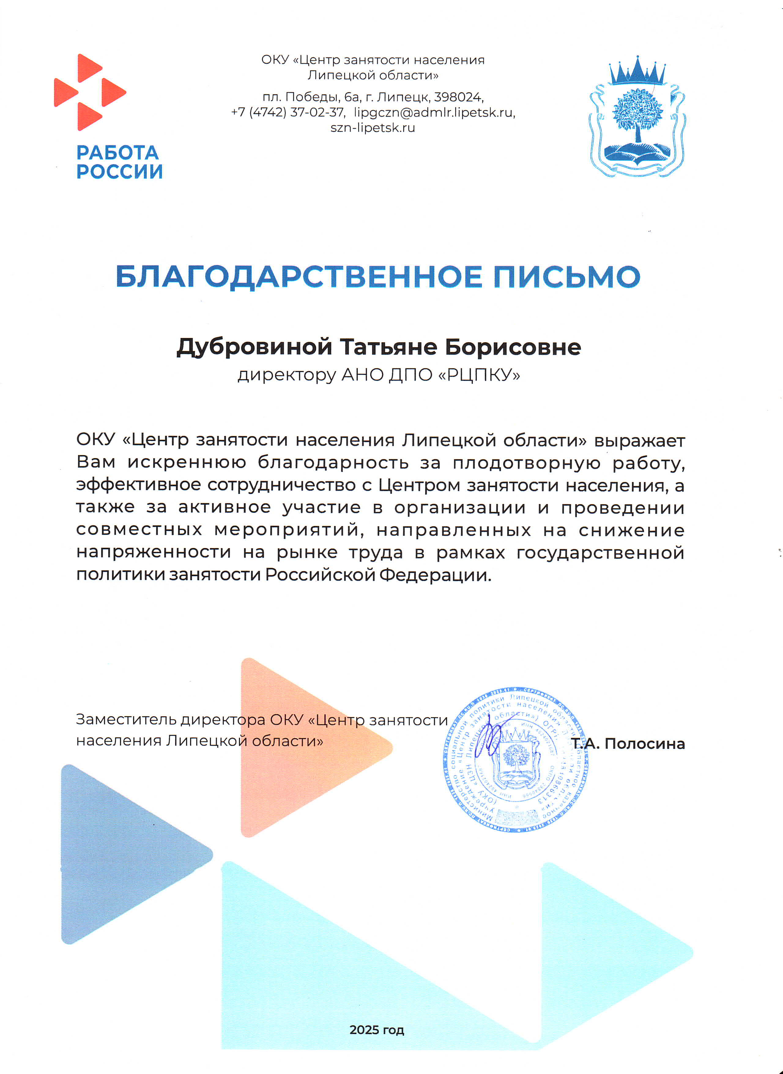 Отзывы, благодарностиПроходила обучение в АНО ДПО «РЦПКУ» в октябре 2025 года по образовательной программе/облучающему курсу: «Пользователь программы «1C: Зарплата и управление персоналом 8.3»».