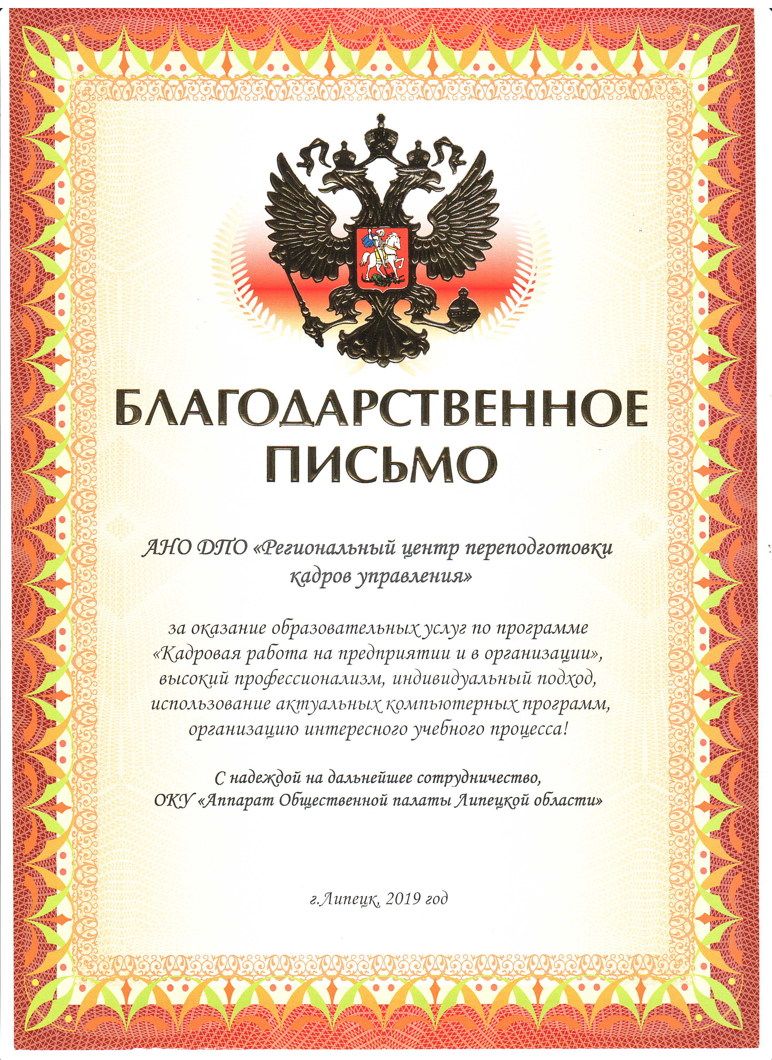 Хочется выразить большую благодарность преподавательскому коллективу Регионального центра переподготовки кадров за их работу. Недавно мы прошли обучение в центре и получили самые главные, ценные и нужные знания по кадровому направлению и делопроизводству. Были не только теоретические занятия, но практические. Особое внимание уделяется программе 1С, которая очень актуальна в наше время.